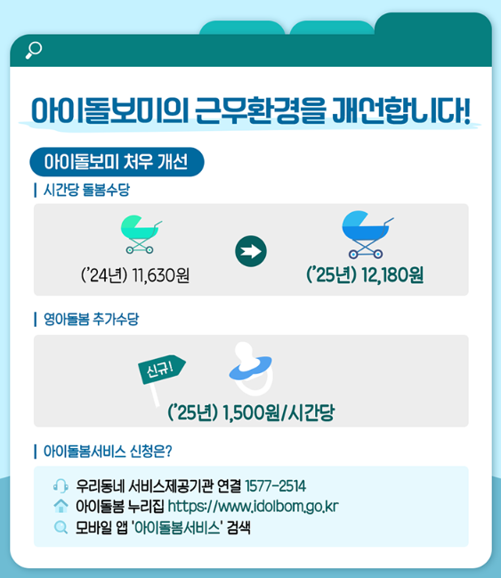 - 시간당 아이돌보미 일자리 수당 향상