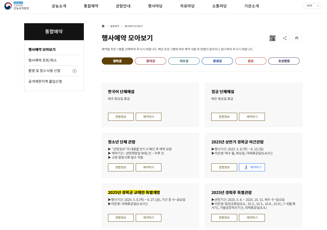 2025년 경복궁 교태전, 관람예약 홈페이지